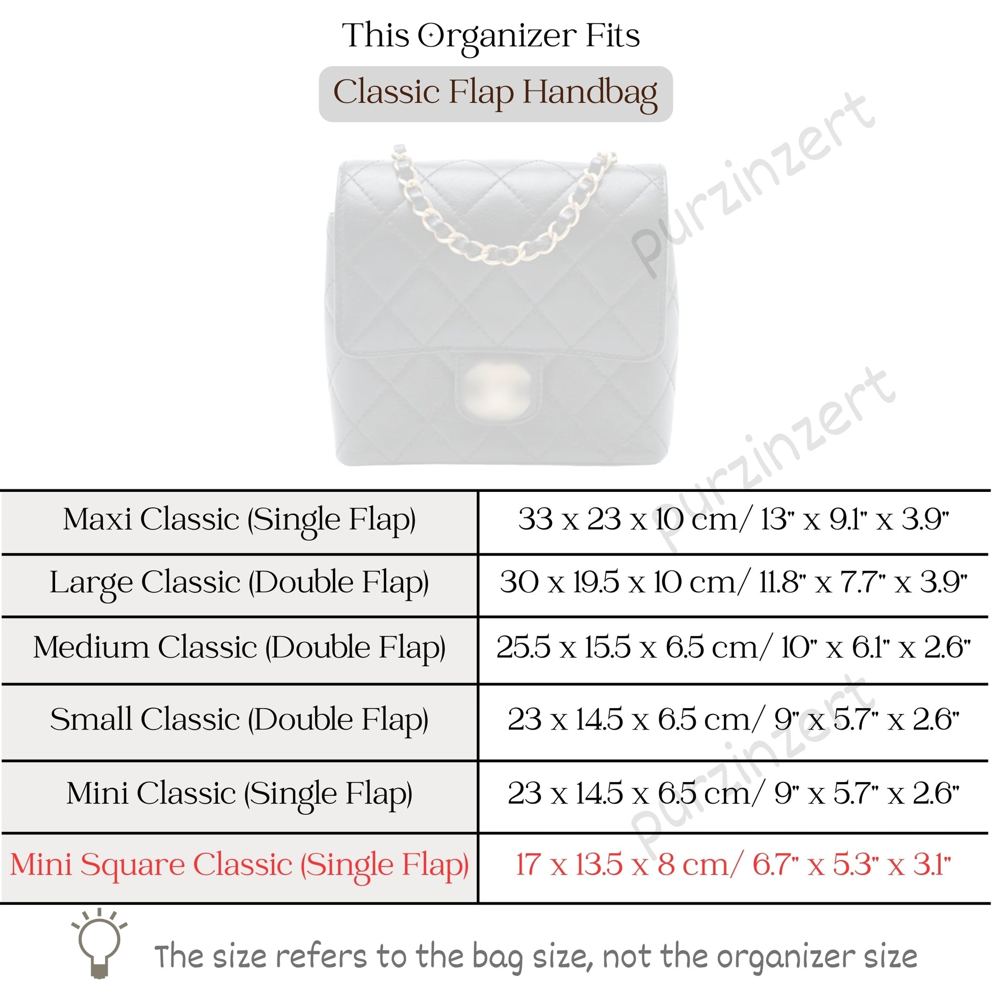 Crafted to perfectly complement Mini Square Classic Flap, this organizer brings both structure and style to your bag. If you own another Chanel bag or wish to explore other looks - feel free to discover more designs available in our store.