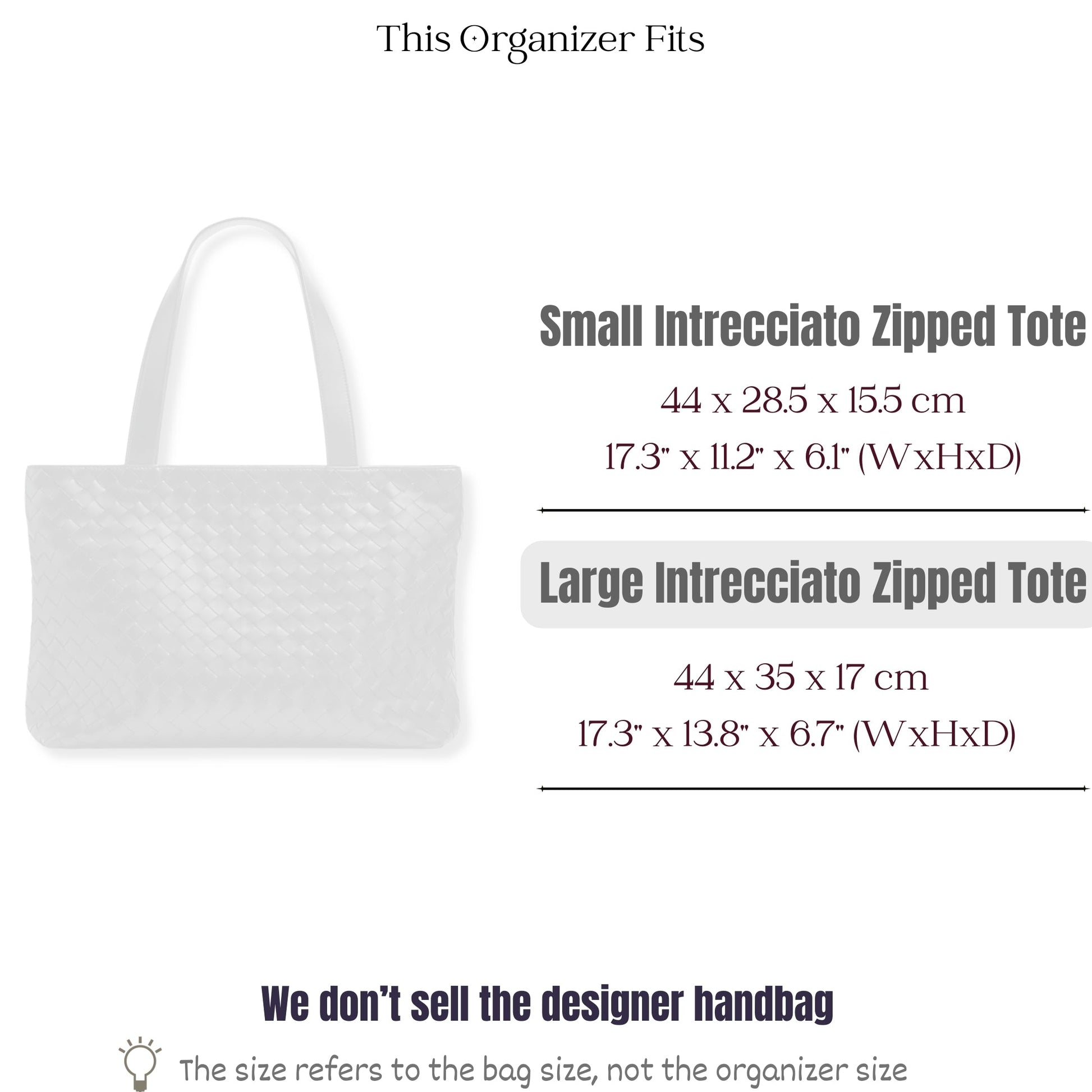 Bag Insert for (Bottega Veneta, Large Intrecciato Zipped Tote) Organizer of Felt Fabric