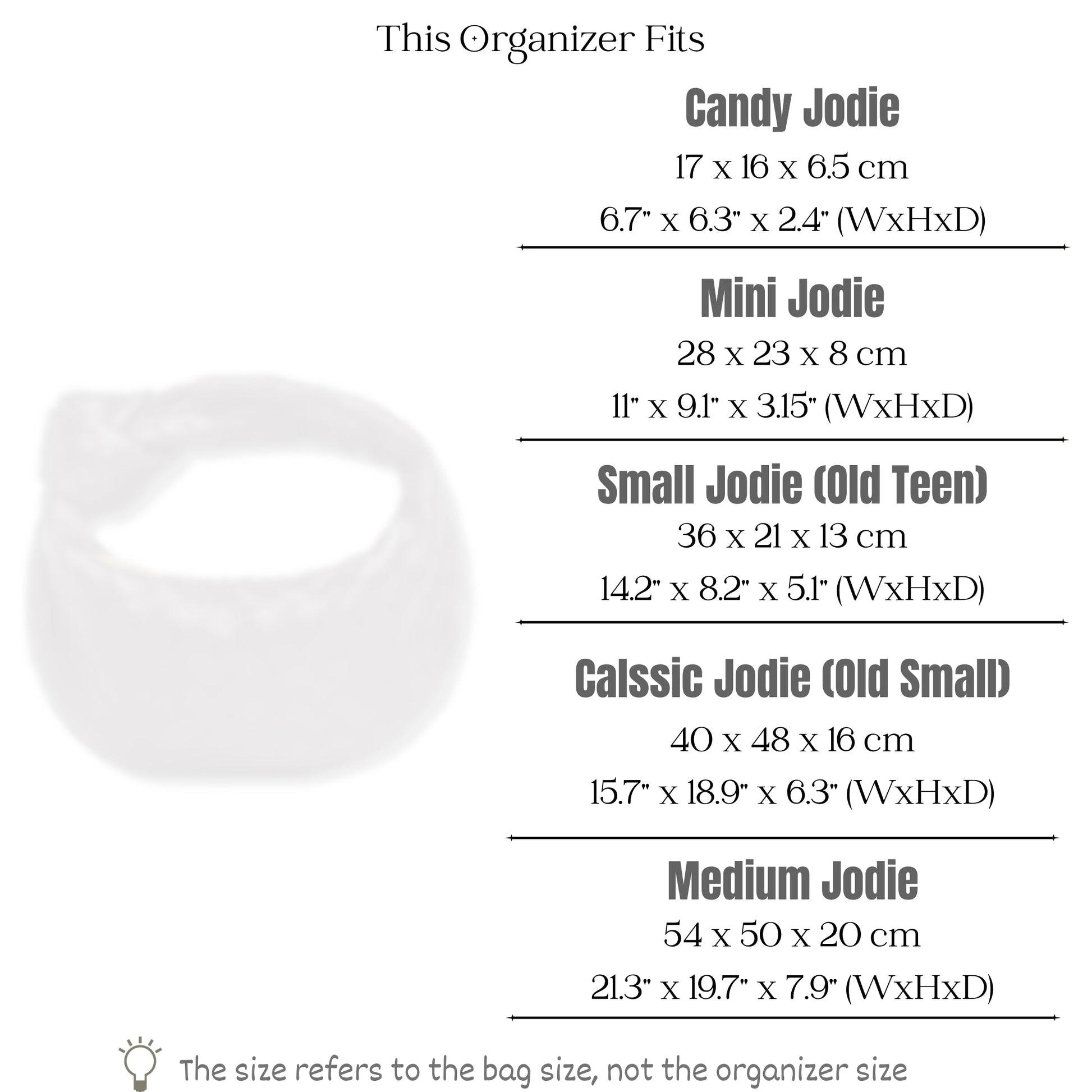 We also offer made-to-order organizers. To get one tailored for you - simply leave a note in the customization box with your bag name - interior base size - and preferred height. Our team will create an exact fit.