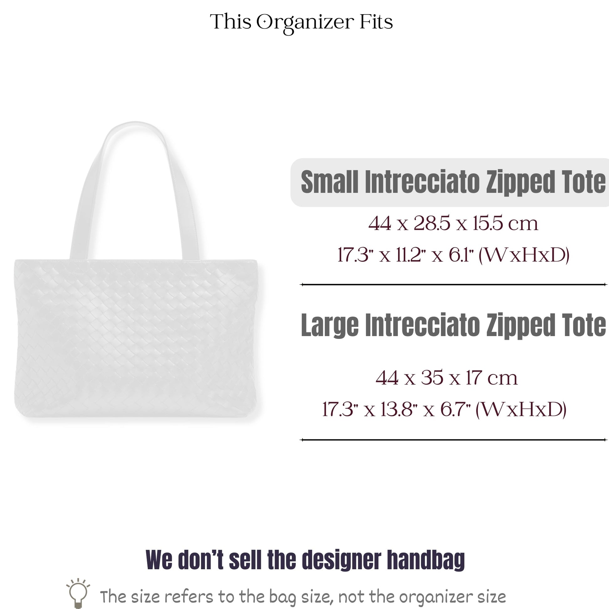 Bag Insert for (Bottega Veneta, Small Intrecciato Zipped Tote) Organizer of Felt Fabric
