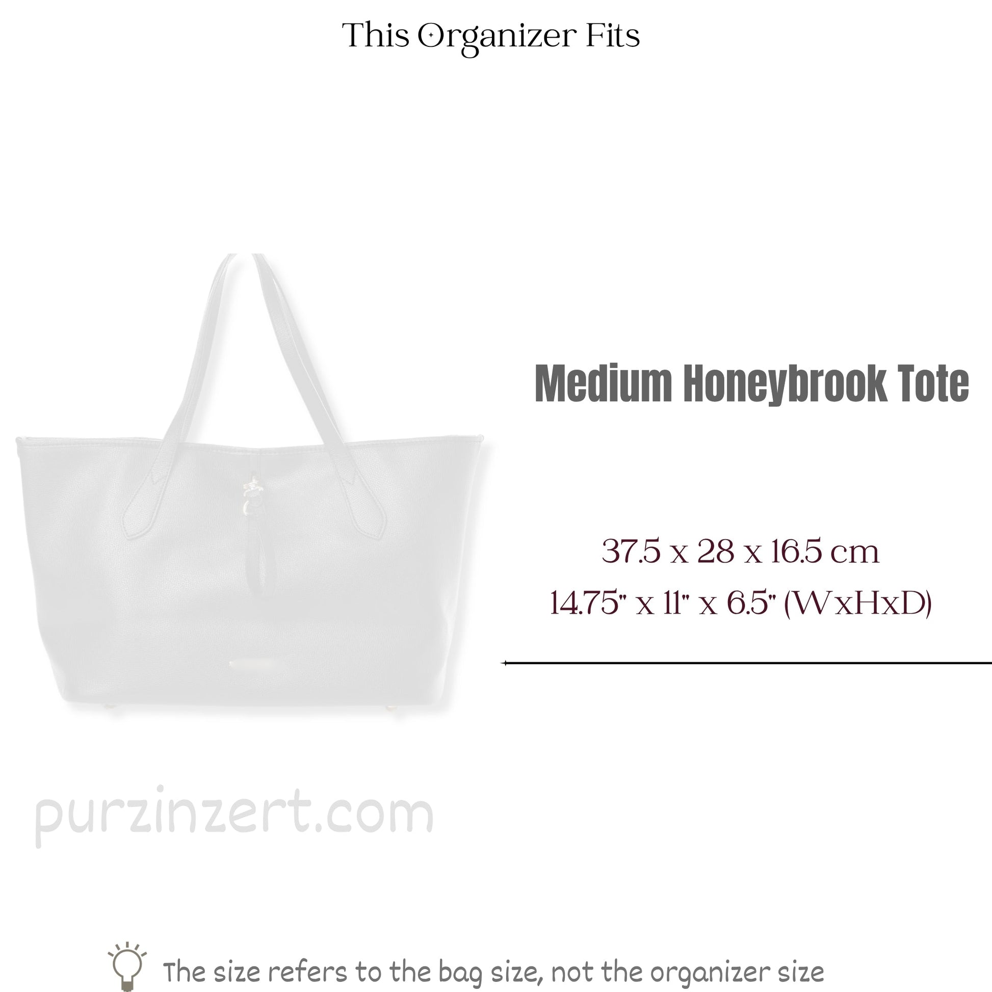 We also offer made-to-order organizers. To get one tailored for you - simply leave a note in the customization box with your bag name - interior base size - and preferred height. Our team will create an exact fit.