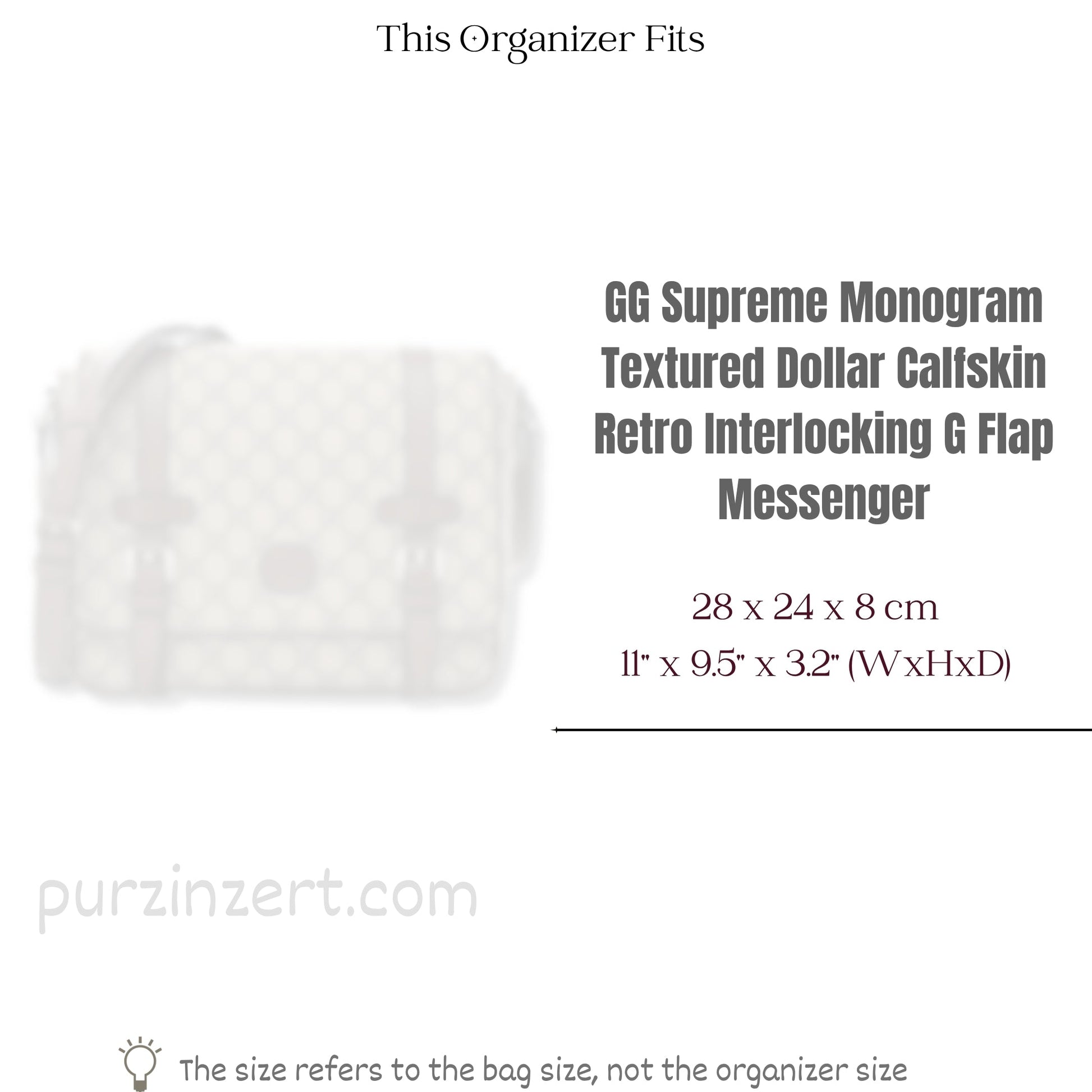 Bag Insert for (Gucci, GG Supreme Monogram Textured Dollar Calfskin Retro Interlocking G Flap Messenger) Organizer of Felt Fabric