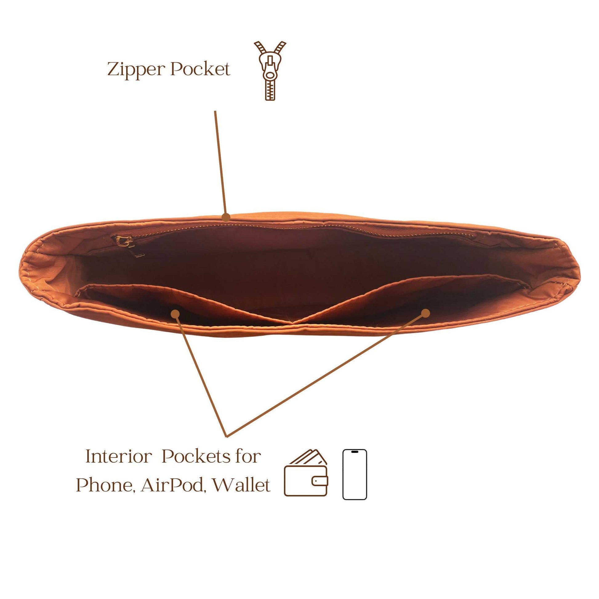 You will receive the organizer just as shown in the picture. Want more options? You can add extras like a base shaper, zipper cover, laptop pocket, bottle compartment, key clasp, or handles when ordering. This premium bag insert provides strong support and reliable protection without extra weight. The durable, color-safe material keeps your bag interior clean and well-structured.