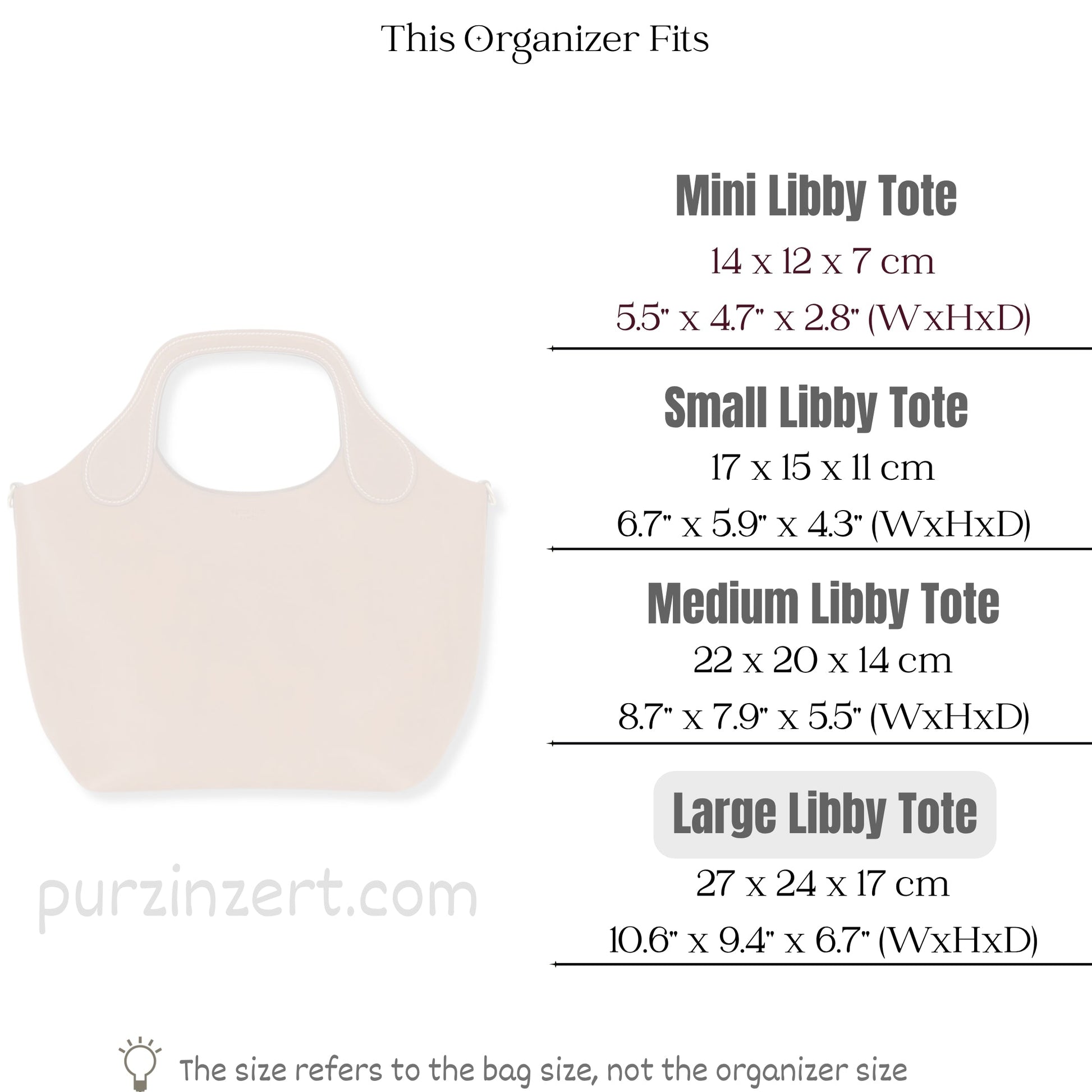 Bag Insert for (Peter Nitz, Large Libby Tote in Arosa Calf) Organizer of Nylon Fabric
