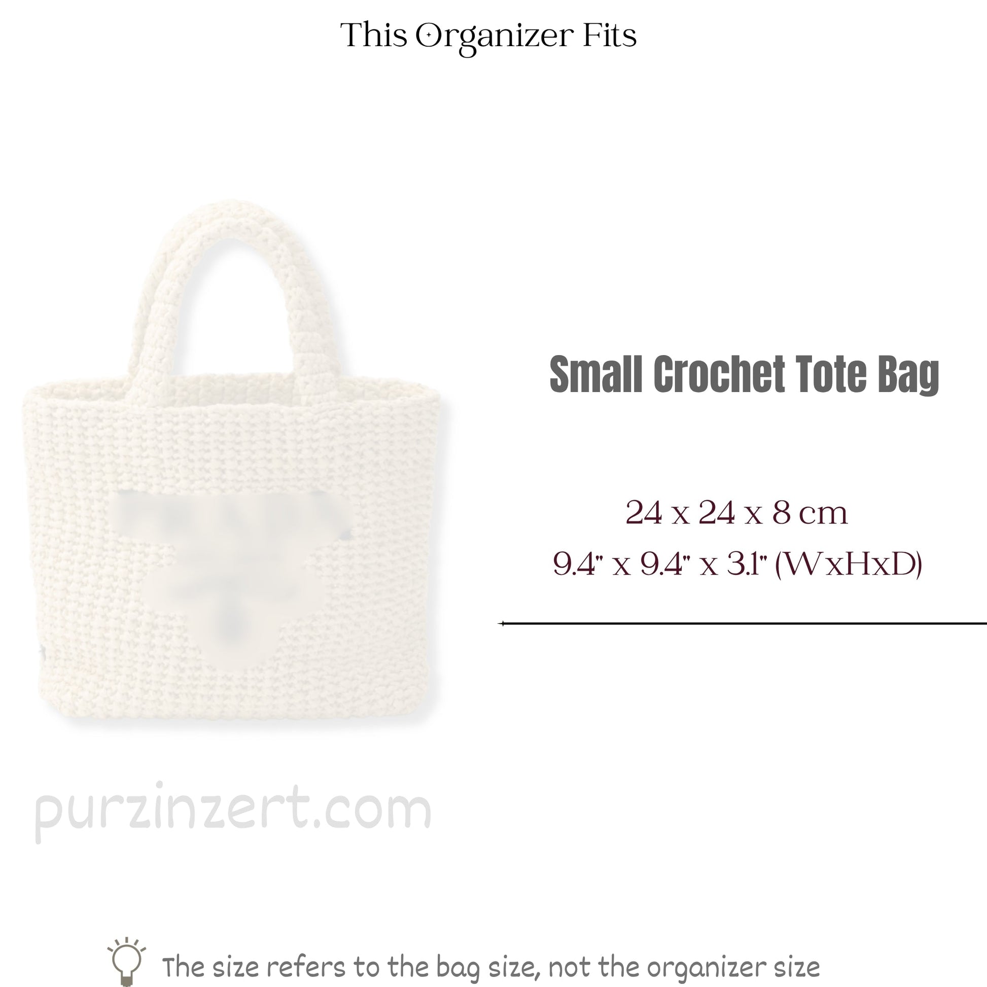 Bag Insert for (Prada, Small Crochet tote bag) Organizer of Silk Fabric