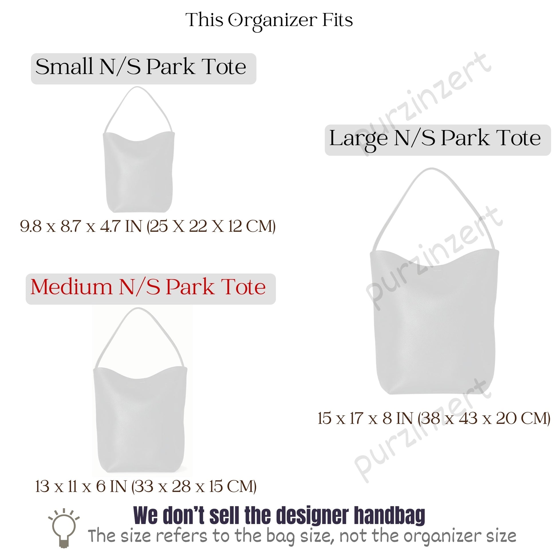 Bag Insert for (The Row, Medium N/S Park Tote) Organizer of Silk Fabric